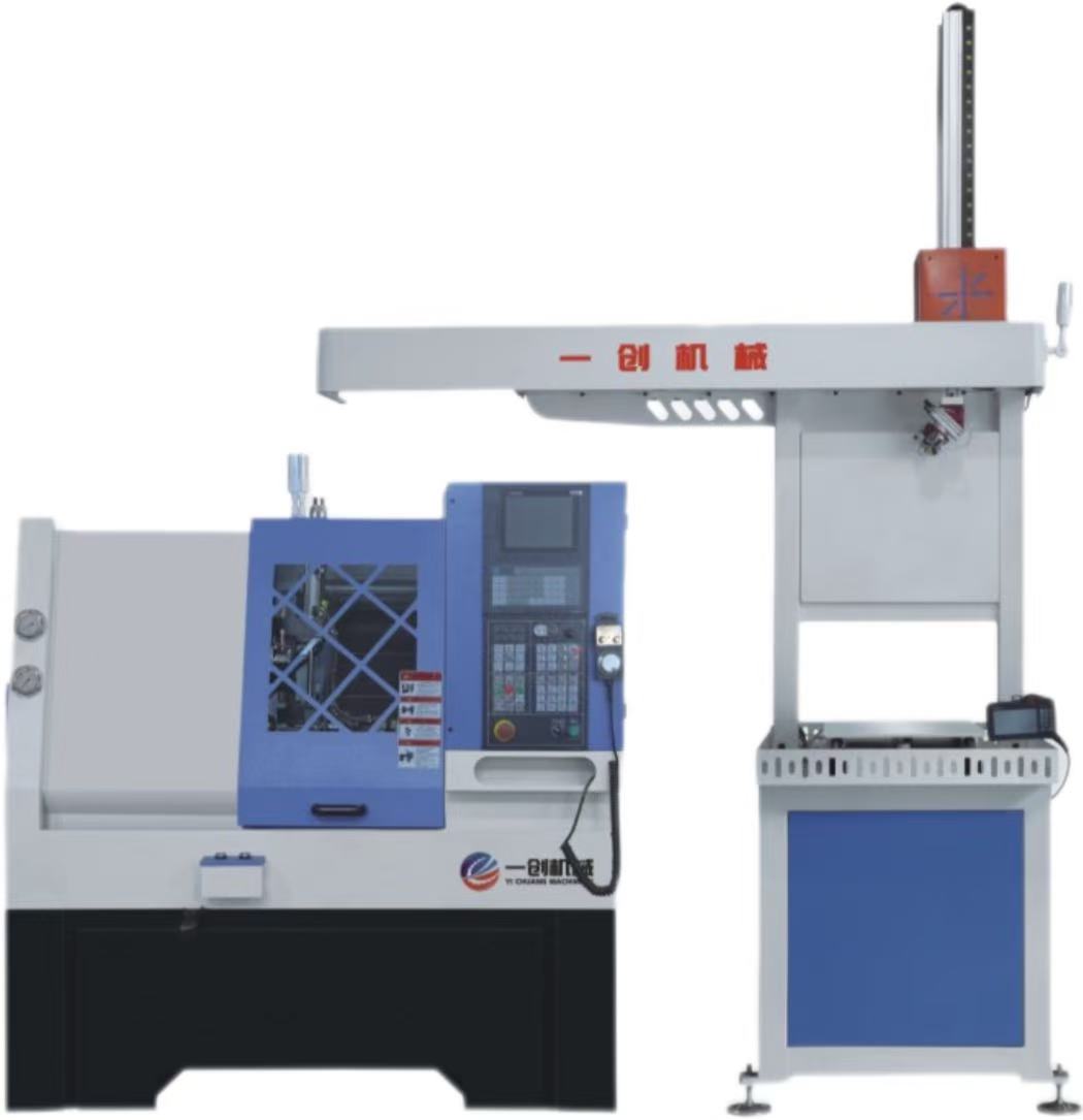 一拖一桁架機械手,右側送料料倉系統上料、加工完成工件可配出料槽或輸送帶下料,生產機械手,也可防止工件磕碰放回料倉原位待人工取料,完成機床自動上下料動作。換料時間為:8-10s,機床含桁架機械手尺寸:長X寬X高(5m*1.8m"3.6m),也可以根據客戶需求進行定制。